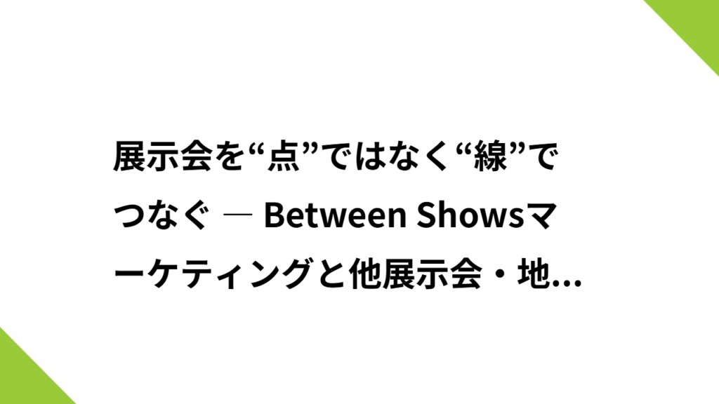 ― Between Showsマーケティングと他展示会・地域イベント連携の戦略 ―