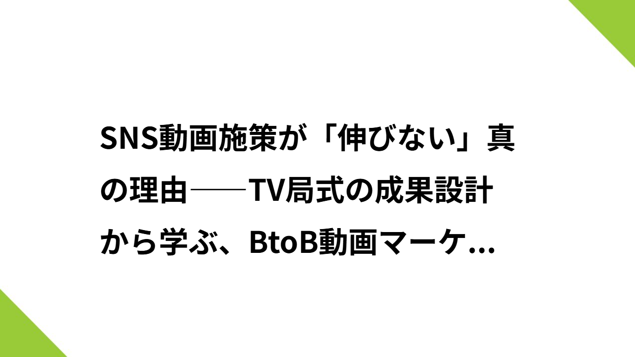 近年、BtoB市場においてもSNSや動画の活用は避けて通れない課題となりました。しかし、多くの企業が「動画を作ったものの、再生数が伸びない」「再生はされても、…