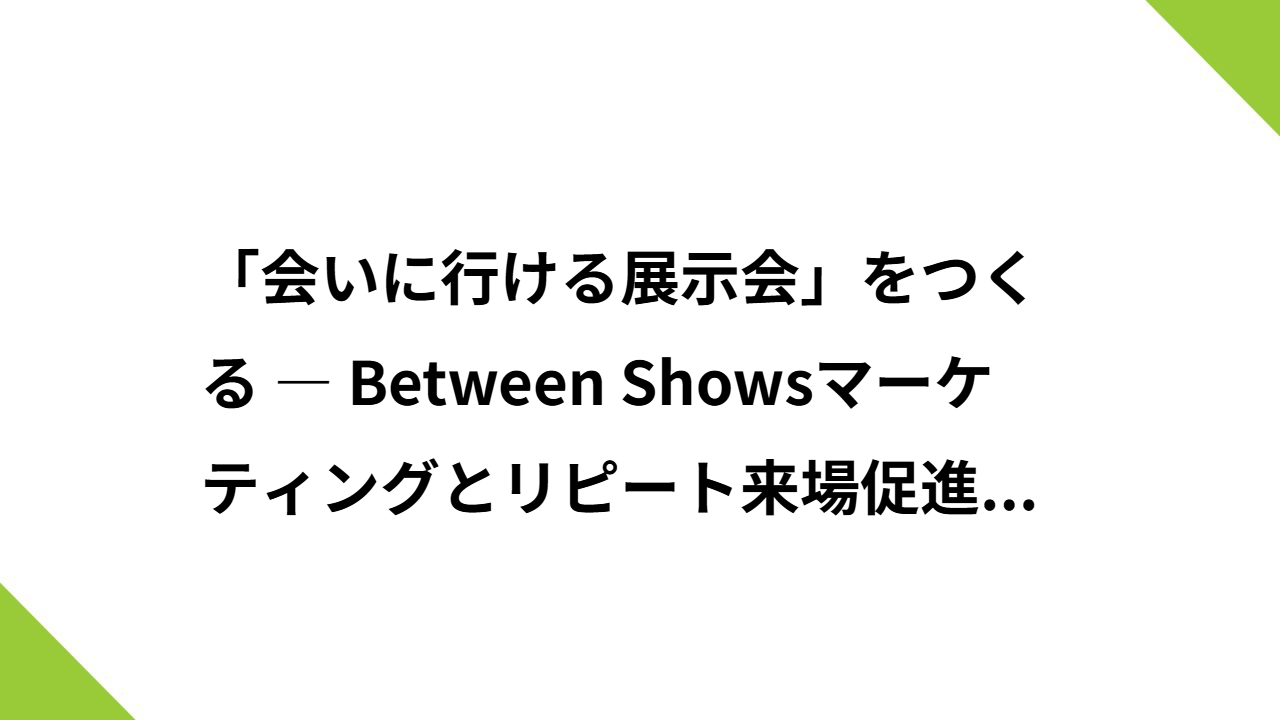 「会いに行ける展示会」をつくる― Between Showsマーケティングとリピート来場促進の戦略 ―展示会は、製品やサービスを披露する「発表の場」であると同時…