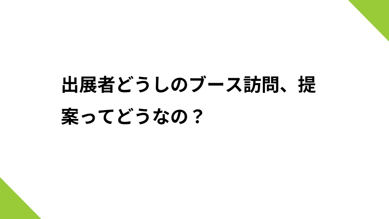 出展者どうしのブース訪問、提案ってどうなの?~「競合ではなく共創」の視点で考える展示会の裏チャンス~展示会に出ていると、一度はこんな場面に出会うのではないでし…